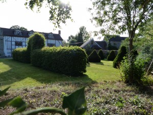 We drove on, down some typically narrow, high-hedged lanes and reached the tiny village of Dilwyn, I think I had it in mind as the fictitious Stoke St Mary where Rachel buys dilapidated Clematis Cottage. It has yet more black and white architechture, a pub which could possibly be The Plough and a village green. The church and its imposing war memorial didn’t feel right for Stoke St Mary though – too grand.