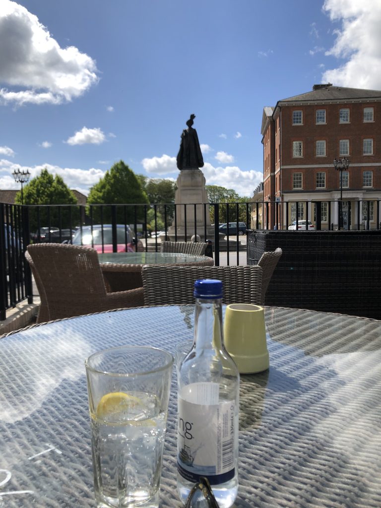 But I couldn’t shake off the idea that it felt like a film set. I’m old enough to remember being terrified by the sixties TV series, The Prisoner, filmed in Portmeirion. Sipping my sparkling water in the sunshine and being stared at by the statue of the Queen Mother, I couldn’t help glance but behind me half afeared there was a giant ball about to give chase.