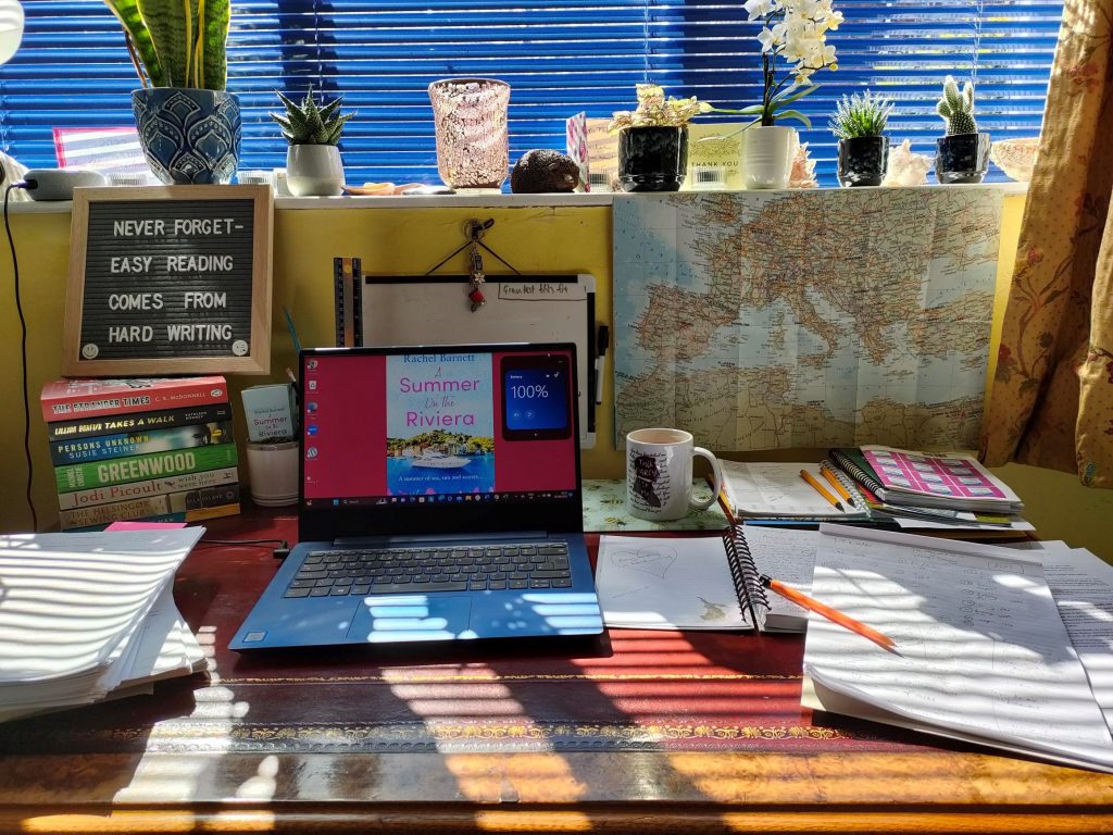 I’m delighted to have Rachel Barnett on the blog today. Here she is describing her writing cave and a little about her writing process. If Rachel’s books are half as much fun as she is, then they’re a must-read! Over to you, Rachel …